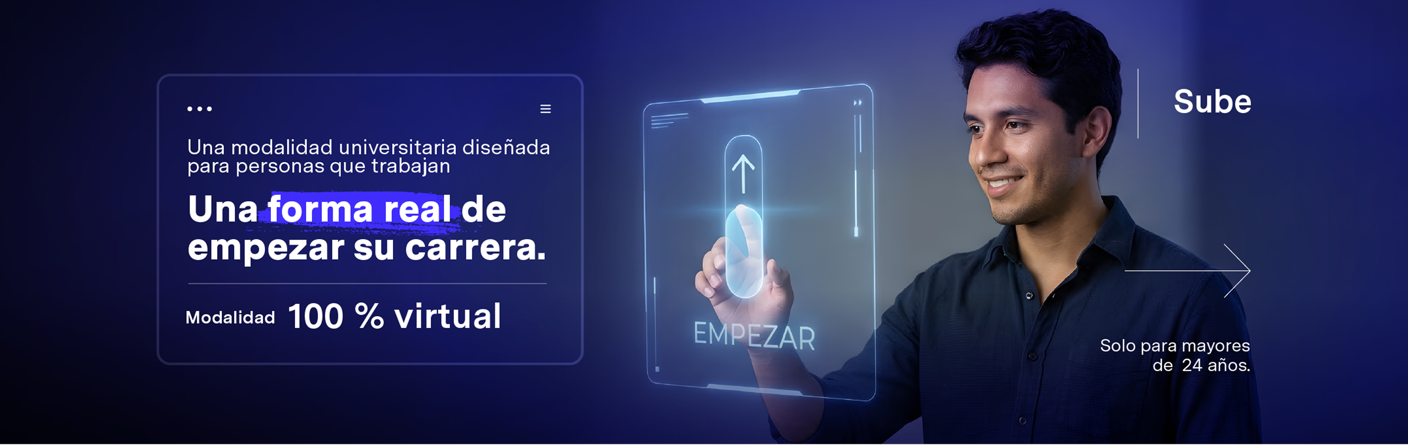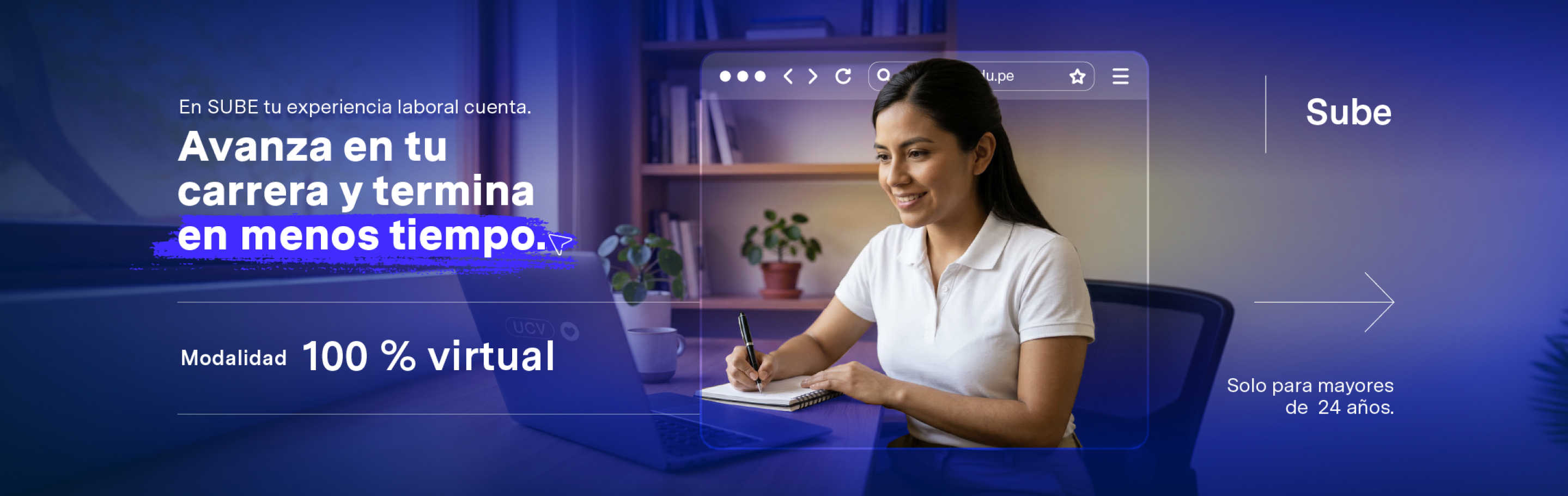Con SUBE puedes iniciar tu carrera universitaria con clases los fines de semana, reconocimiento de tu experiencia laboral y una metodología diseñada para avanzar en menos tiempo.